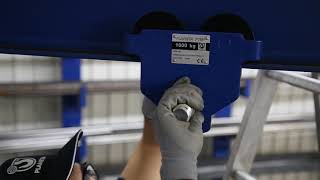 Durch den einfachen Wechsel von Distanzscheiben bieten PTM- & GTM-Fahrwerke Einstellbarkeit auf viele Träger. Die Standardbolzen sind für kleine Breiten, die Bolzen Größe 2 bieten Verstellmöglichkeit bis hoch zu großen HE-B-Trägern mit 300 mm Breite (für Sonderträger: Mehrpreis auf Anfrage).